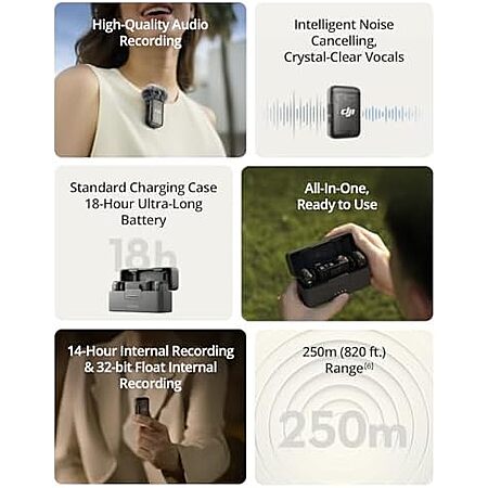 Model: DJI Mic 2, Wireless Lavalier Microphone, Noise Cancelling, 48kHz 32-bit Float Internal Recording, 820 ft.(250m) Range, 18H Battery with Charging Case, Microphone for Camera/Phone, Vlog, Streaming
