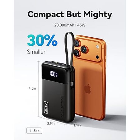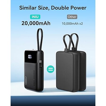 Model: INIU Portable Charger, Smallest 20000mAh Power Bank with Build in USB-C Cable, 45W PD Fast Charging USB C in&Out Battery Pack, External Phone Charger for iPhone 15 14 13 12 Samsung S22 S21 Google etc