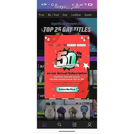 GagaOOLala.com, an Asian based, BL Drama, LGBTQ+ Streaming Service, there is a special annual subscription for "Free" or "Non-Subscribing" users - 50% off for Life, through January 26th. The conditions are you have to subscribe through the website, and use a credit card (not PayPal), and your phone number is required (has to do with age laws). I paid only $42 for a year! If you already subscribe, maybe start a new account through another email, if you want. MERRY CHRISTMAS TO MY BLENDIES! 🎄✴️☃️🎅🏻🦌❄️ (BL+FRIEND=BLEND or maybe BLENDIE! Let's start a meme.🤗🥰 "These who like you watch BL Dramas!" 🤗🥰👨 ❤️ 💋 👨👩 ❤️ 💋 👩) They have Apple, Roku, Amazon Firestick apps, and stream up to 4K.