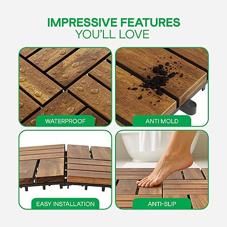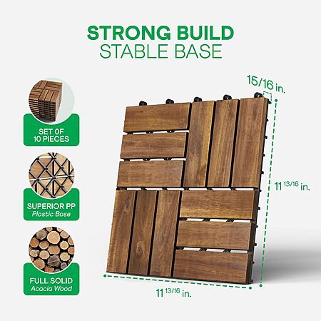 10-Piece Idzo 9.6 Square Feet Waterproof Acacia Interlocking Deck Tiles $20.36 + Free Shipping w/ Prime or on $35+