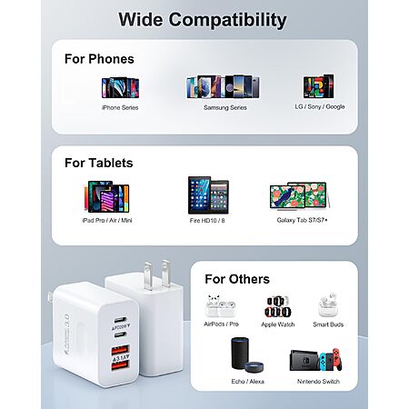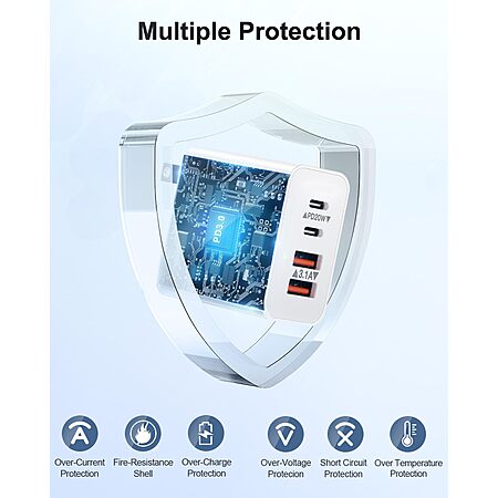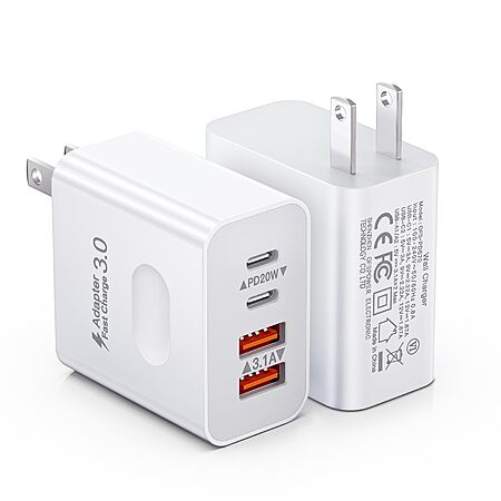 $9.99*:[Prime]2 Pack USB C Wall Charger, 40W 4-Port Fast Charging Block USB C Charger Dual USBC Power Adapter + QC Wall Plug