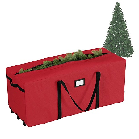 Red Christmas Tree Storage Bag for Artificial Trees Up to 9 ft. Tall - Rolling Wheeled Canvas Tote with Zipper Closure $33.99