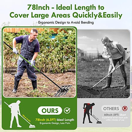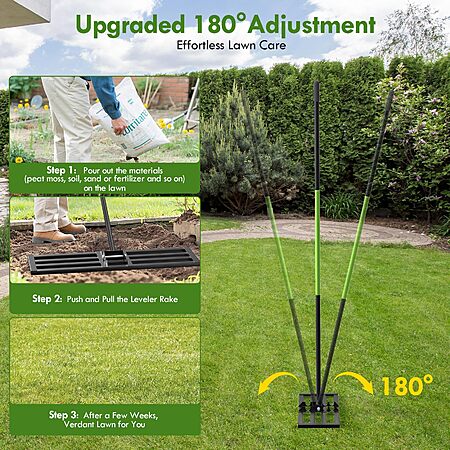 $30*:Seeutek Lawn Leveling Rake, 45” x 10” Lawn Leveler with 6.5FT Stainless Steel Handle Rakes for Lawns, 0-180° Adjustable Ground Leveler Tool