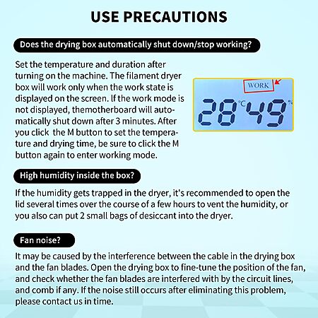 - 【Heating More Evenly】 The unique design of the built-in fan in the box is based on the principle of modynamics of air, makes the filament heated more evenly. SH01 makes drying more efficient. Any questions about the product please feel free to let us know. Our technical support team will provide service as soon as we can