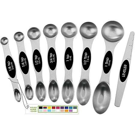 - Magnetic For Easy Use And Storage - These magnetic spoons let you use one spoon at a time and then they nest together for easy storage. Quickly grab the spoon you need without having to fumble with opening and closing a ring. They even have U.S. and metric measurement markings that are easy to read and won't fade or rub off. You'll wonder how you ever lived without them.