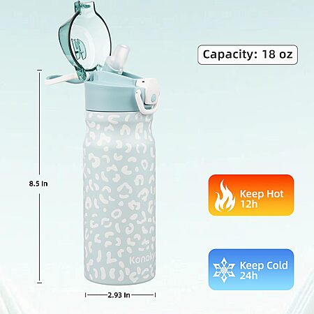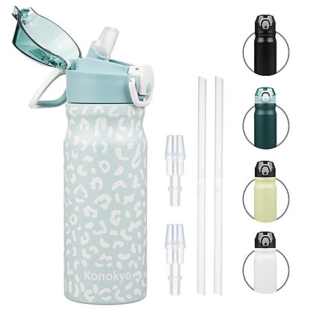 Konokyo Store 18oz Stainless Steel Double Wall Insulated Water Bottle w/ Straws $8.70 @ Amazon