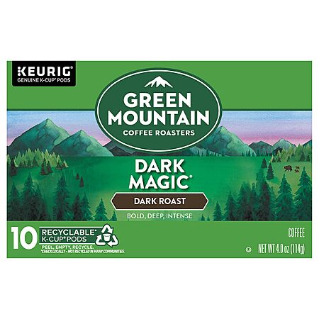 Amazon [amazon.com] has 10-Count Green Mountain Dark Roast Coffee K-Cup Pods (Dark Magic) for $4.44. Shipping is free w/ Prime or on $35+.