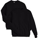 2-Pk Hanes Men's EcoSmart Fleece Pullover Crewneck Sweatshirts (Black, Medium)
