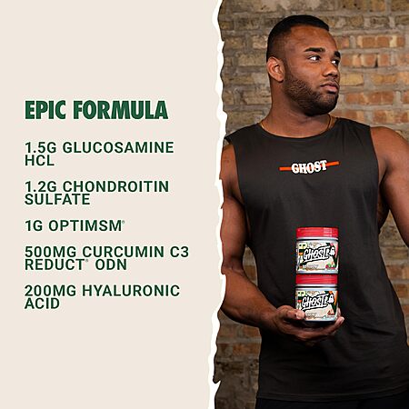 - Epic Formula: Each scoop of GHOST Joint features 1.5G Glucosamine HCl, 1.2G Chondroitin Sulfate,1G OptiMSM, and other legendary ingredients. It's also gluten free, soy free, and sugar free.