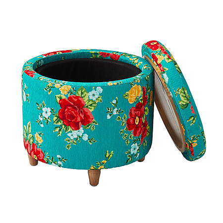 $38.27: The Pioneer Woman Vintage Floral Round Storage Ottoman with Wood Tray Lid, Teal
