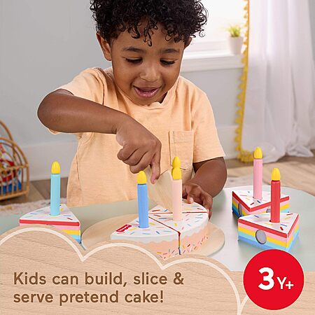 Fisher-Price Wood Pretend Play Toy Cake Set, 14-Piece Wooden Food Decorating & Serving Play $12.80 +FS w/Prime