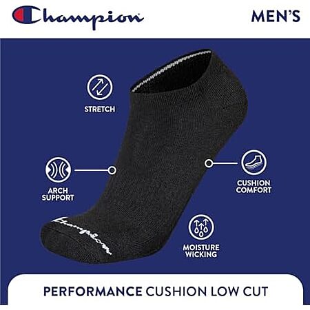 6-Pack Champion Men's Low Cut Breathable Moisture-Wicking Athletic Socks