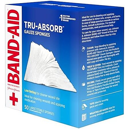 [S&S] $2.55*: 50-Ct 4x4" Band-Aid Brand Tru-Absorb Sterile Gauze Sponges at Amazon