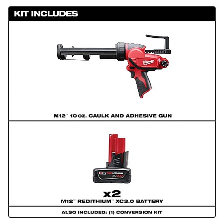 Model: M12 12V Lithium-Ion Cordless 10 oz. Adhesive and Caulk Gun with 3.0 Ah Battery Pack (2-Pack)