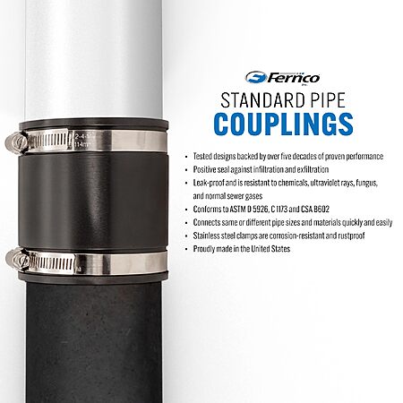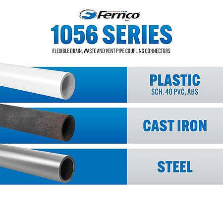Fernco P1056-150 Cast Iron, Plastic and Steel Pipe Flexible Coupling Connector Sewer and Drain Coupler Adapter 1.5" X 1.5" (Black) $5.21 + Free Shipping w/ Prime or on $35+