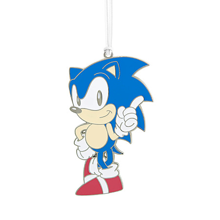Delight your favorite gamer with this Sonic the Hedgehog metal Hallmark Christmas ornament. The video game icon will stand out on your tree with his iconic blue quills, red shoes and confident pose.