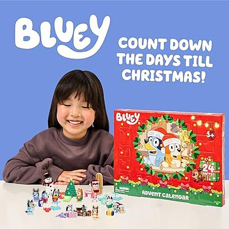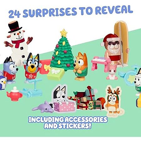 Model: Bluey Mini Figures Christmas Advent Calendar, 24-Day Christmas Calendar Countdown with Festive Bingo, Muffin, and Socks, Advent Calendars for Ages 3+