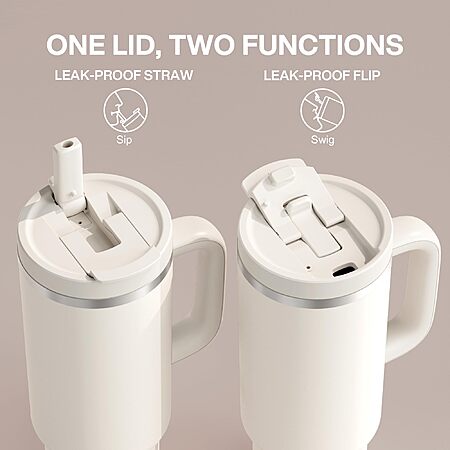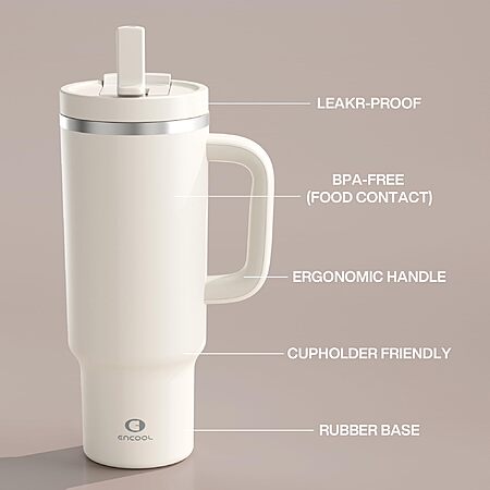 40-Ounce ENCOOL Stainless Steel Insulated Tumbler w/ Handle & Straw (Cream Moon) $11.19 + Free Shipping w/ Prime or on $35+