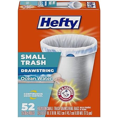 52-Count 4-Gallon Hefty Small Trash Bags (Ocean Water) $5.16 w/ S&S + Free Shipping w/ Prime or on orders over $35