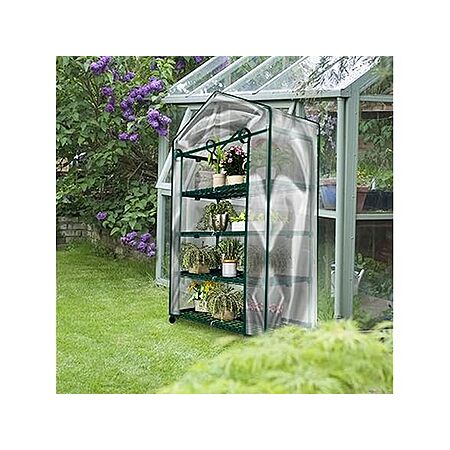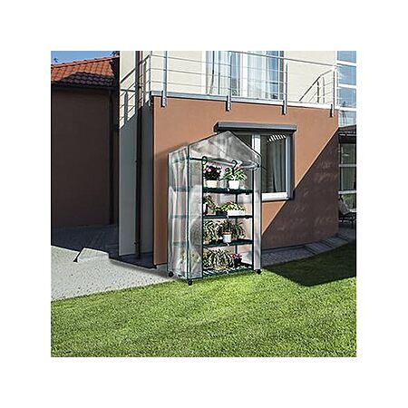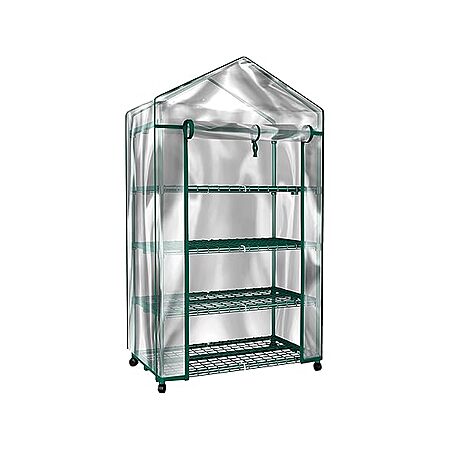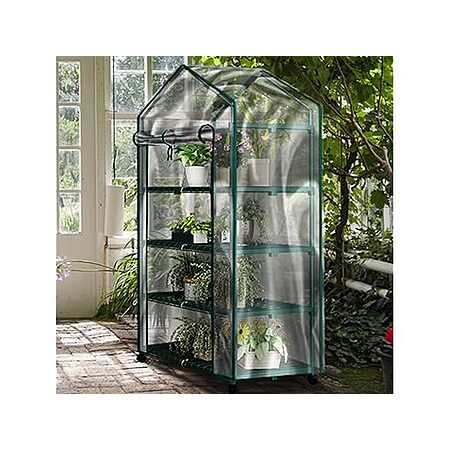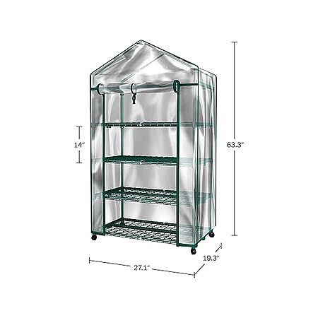 - 4-TIER GREENHOUSE KIT - The 4 tiers of sturdy shelving in this small greenhouse are 27-inches-wide, have 14-inches of height spacing, and hold up to 24lbs each to provide ample room for trays, pots, or planters for small to medium plants.