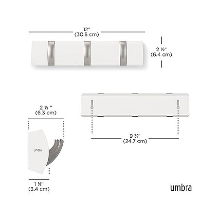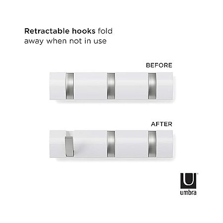 3-Hook 13" Umbra Flip Wall-Mounted Coat Rack Rail Hook (White/ Silver) $12.99 + Free Shipping w/ Prime