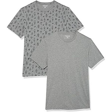 Model: Amazon Essentials Men's Slim-Fit Short-Sleeve Crewneck T-Shirt, Pack of 2, Grey Heather/Cactus, Small
