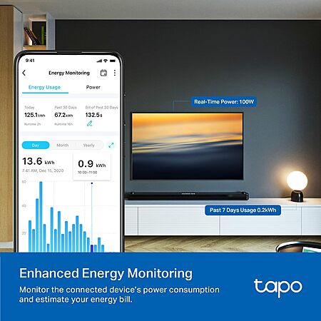 Model: TP-Link Tapo Smart Plug P210M, Wi-Fi in-Wall Outlet, Matter Compatible, Energy Monitoring, 15A/1800W Max, Works with Alexa, Apple Home, Google Home, SmartThings, Voice/Remote Control, ETL Certified