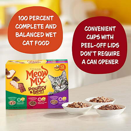 Meow Mix Tender Favorites Poultry & Beef Variety Pack, Wet Cat Food, 2.75 oz Cup (12 Pack) $8