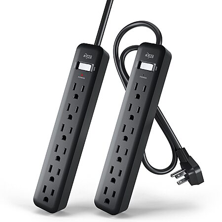 SLEEK & POWERFUL - Our black power strip 2-pack features a sleek, 6-outlet power bar with a slim design, 2ft extension cord and flat plug. This black power strip delivers power without sacrificing style!