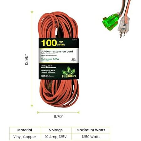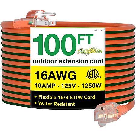 100' Go Green Power 16/3 SJTW Outdoor Extension Cord (Orange, GG-13700) for