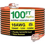 Amazon has 100' Go Green Power 16/3 SJTW Outdoor Extension Cord (Orange, GG-13700) for $13.99. Shipping is free w/ Prime or on $35+ orders.