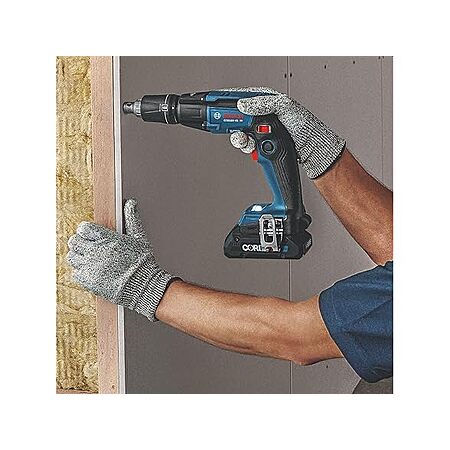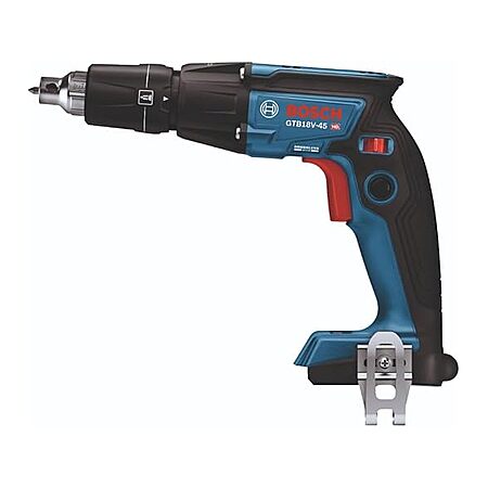 The Bosch GTB18V-45 18V Brushless 1/4 In. Hex Screwgun is designed to get the job done comfortably and fast, without the power cord, when driving drywall screws. This light screwgun features a well-balanced ergonomic grip ideal for comfortably holding the tool, allowing the thumb and the index finger to control the operation. It features Xtend Drive, an intelligent lock-on mode that activates the motor only when the bit senses pressure The tool remains operational but is quiet between screw activations, increasing runtime while decreasing noise. The screwgun has been designed to keep the user's hand closest to the work material, for max control. And it features a retractable depth gauge, so the user doesn't have to remove the cone on the tool to reverse out a screw. With an efficient brushless motor, this tool delivers 4,500 max rpm to drive drywall screws into sheet rock, gypsum board and metal or wood studs. This variable-speed screwgun features an easy-to-use lock-on switch and an LED light.