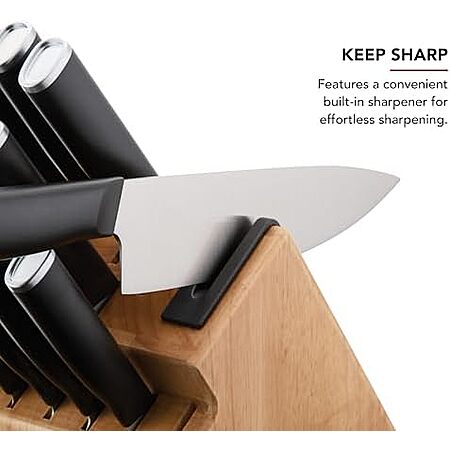 Model: KitchenAid Classic Step Knife Block Set with Built-In Knife Sharpener, High Carbon Stainless Steel Kitchen Knives, Sharp Kitchen Knife Set with Block, 14-Piece, Natural