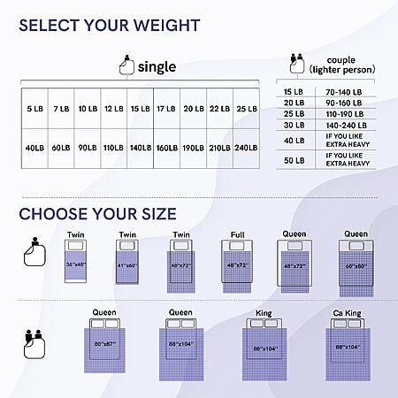 - [Sizing Guide] To get the appropriate size for one adult, take 10% of your body weight and add 1 pound. Please select a weighted blanket measuring 80x87 inches or 88x104 inches for sharing.