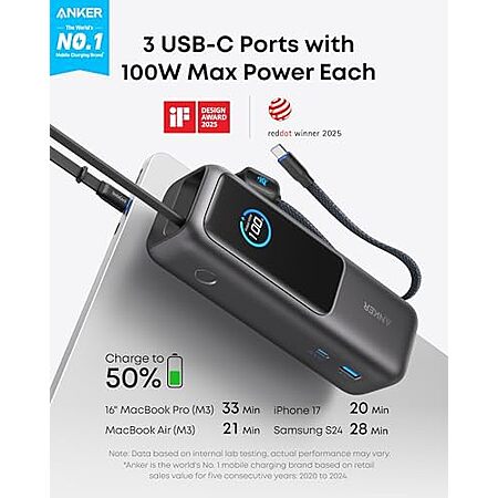 $87.99*: 25,000mAh Anker Laptop Power Bank w/ 100W USB-C, up to 165W Max Output (Black) at Amazon