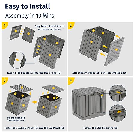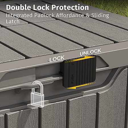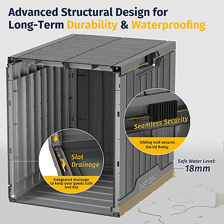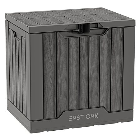 Model: EAST OAK Outdoor Storage Box, 31 Gallon Deck Box Indoor and Outdoor Use, Waterproof Resin Storage Bin with Latch for Patio Cushions, Gardening Tools, Outdoor Toys, UV Resistant, Deep Grey