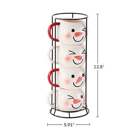 Snowman or Holiday Faces Stacking Ceramic Mug Set 12 OZ 4-Piece Holiday Time $6.23 walmart