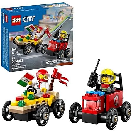 $6: 70-Piece LEGO City: Soapbox Racing - Pizza vs. Fire Truck Race Car Pack (60458, 2025) at Amazon