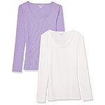 2-Pack Amazon Essentials Women's Slim-Fit Scoop Neck Sweater (Lilac / White)