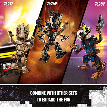 Put a movable model of Baby Groot from the Marvel Cinematic Universe into the hands of kids Ages 10 and up with LEGO Marvel I am Groot (76217) buildable toy. The lovable and mischievous toddler is easy to position and pose however kids want. Every fan of Marvel Studios’ Guardians of the Galaxy Vol. 2 will know the famous scene where Baby Groot dances. Now kids can recreate this scene and others with this detailed, movable recreation of the lovable character. The buildable model is easy to position and pose, and there’s even a pretend cassette tape included for make-believe music! In addition, the free LEGO Building Instructions app lets kids view, zoom and rotate the model as they build, providing an amazing sense of immersion and interaction during the construction process. The extensive range of LEGO Marvel buildable toys provides children with premium-quality playsets that deliver endless imaginative build-and-play possibilities. This LEGO Marvel set makes a special birthday, holiday or any-day gift idea for kids 10+ years old who are fans of Marvel Studios’ Guardians of the Galaxy movies and the super cute Baby Groot. The highly posable model stands over 10.5 in. (26 cm) tall and comes with a cassette and a nameplate. Contains 476 pieces. Kids build their highly posable Baby Groot model figure, from the Marvel Studios Guardians of the Galaxy Vol. 2, with all its cute features The fully jointed Groot buildable toy is easy to position and comes with a pretend cassette to recreate the famous Baby Groot dancing scene Passionate fans can place the cute Marvel character in a pose, can dance with him to the rhythm of the music and recreate his funny movements The set comes with printed instructions and a digital LEGO Building Instructions app to zoom and rotate while building the posable model This set is a great birthday gift idea for kids 10+ years old who are fans of the Marvel universe and love Avengers buildable toys