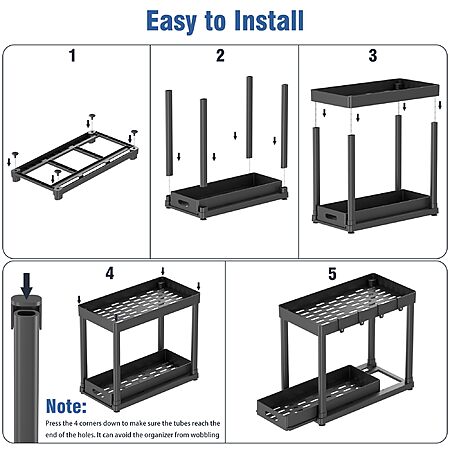 POUGNY 2 Pack Pull-Out Storage Organizers, Under Sink Organizer, Black - $14.99