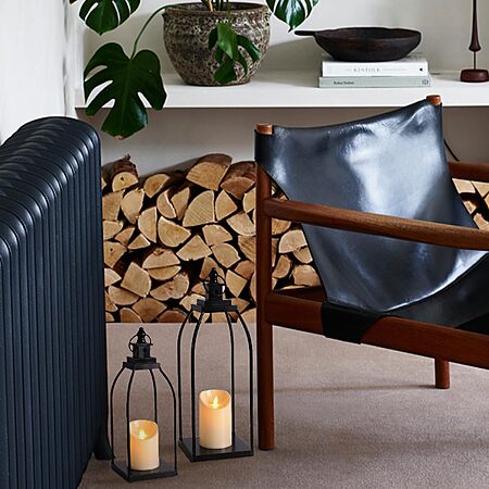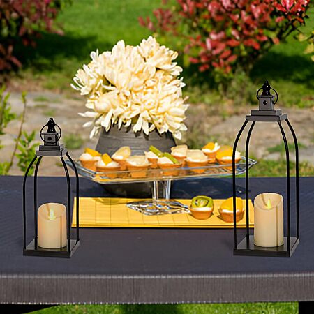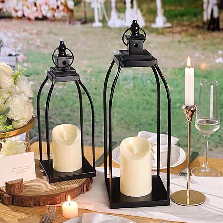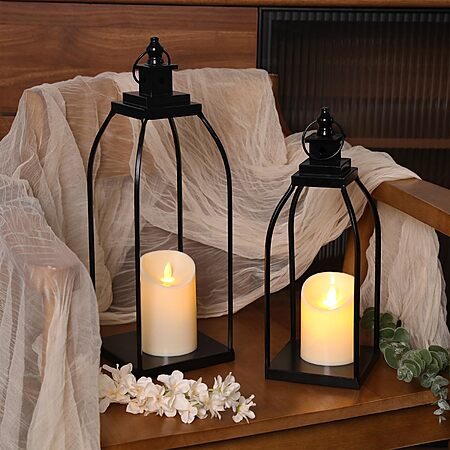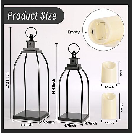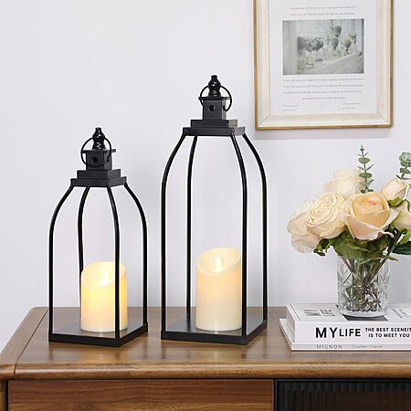 DARJEN Modern Farmhouse Lantern Decor - 17'' 14'' Black Metal Candle Lanterns with 2 Flameless Candles - $14.75