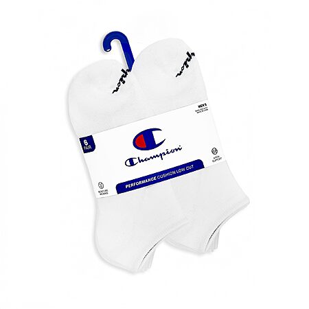 Champion Men's Low Cut Beathable Moisture-Wicking Athletic Socks (6-Pack), White - $4.84