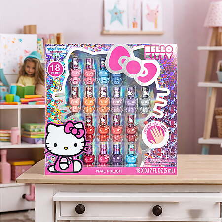 | Product Description: | Let her bring the nail salon to your home with this 18 piece Hello Kitty nail polish set with different nail polishes. Our water-based, non-toxic nail polishes are carefully crafted for young hands, so no need to worry about your little one playing with any harsh chemicals. Little ones will love it even more because with so many colors and finishes to choose from, she will soon become a mani expert! And to top it off, each bottle is in the shape of the adorable Hello Kitty herself, so girls will love to display or collect them. Let her imagination run free with all the endless creations she will make." SET INCLUDES: This set includes 18 different opaque, glittery, and shimmery shades that includes various shades of purple, pink, green, yellow, red, blue, and more. Safe for Ages 3 and Up: Being that our nail polishes are peelable and non-toxic, it is safe for children ages 3 and up. There is no need to use any nail polish remover that contains those harsh chemicals and vapors, which is music to any parents' ears. Fast-Drying: The drying time for our nail polishes is pretty quick. In just about 5-10 minutes, your little one can have her nails dried completely and ready to take on the day in style. Adorable Hello Kitty Design: Each bottle is in the shape of the beloved Hello Kitty, adding to the playful aspect of this set. It provides a twist of fun with each manicure, and bottles can be collected or displayed, making it perfect for any Hello Kitty fan. |