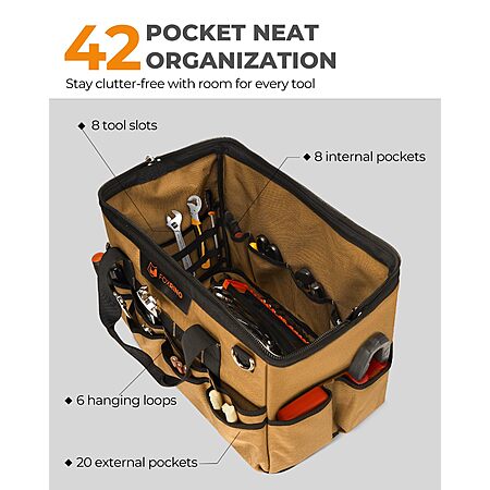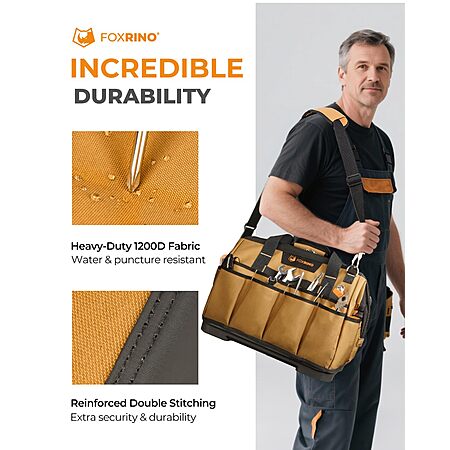 Foxrino via Amazon [amazon.com] has their 16" tool bag on sale for $31.99. Shipping is free w/ Prime or on $35+ orders.