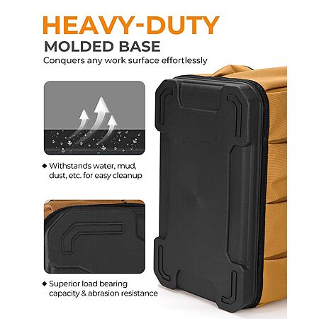 • 1200D Oxford fabric and triple-stitched reinforced bottom, withstands 55+ lbs of tools.
