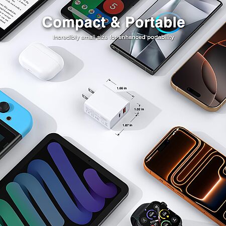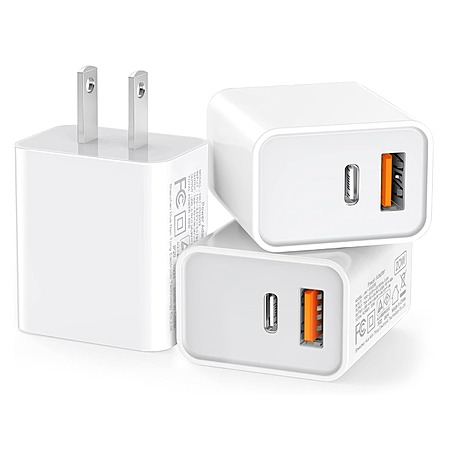 - 3 Pack Dual Port Charger: Compatible for iPhone 17/17 Pro/17 Pro Max/16/15/15 Pro/ 15 Pro Max/15 Plus/14/14 Plus/14 Pro/14 Pro Max/13/13 Pro Max/13 Pro. Block two in one - USB-A and USB-C ports to charge two devices simultaneously at high speed. Minimize waiting time and frees you from messy chargers with various interfaces