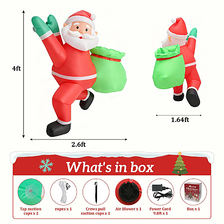 $19.99: Magotan 4ft Christmas Inflatables Outdoor Decoration Santa Claus Christmas Blow Ups with Built in LED Lights Climb Over the Wall Santa Claus