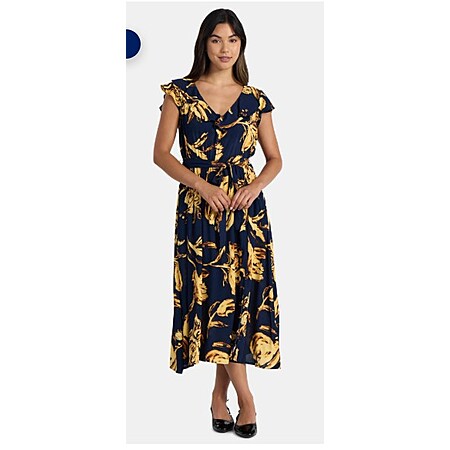 Time and Tru Women's Viscose and Rayon Ruffle Midi Dress with Flutter Sleeves (4 patterns) from $7.70-$8.71 at Walmart + Free shipping w/ Walmart+ or on $35+