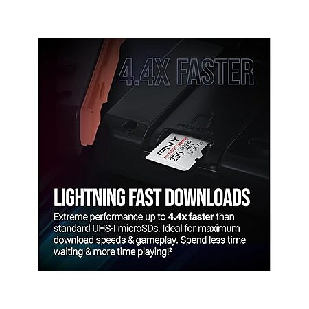 - LIGHTNING FAST DOWNLOADS: Experience extreme performance up to 4.4x faster than standard UHS-I microSD cards, to spend less time waiting and more time playing! Double your gaming device's internal storage with up to 256GB of expanded AAA game space.¹,²